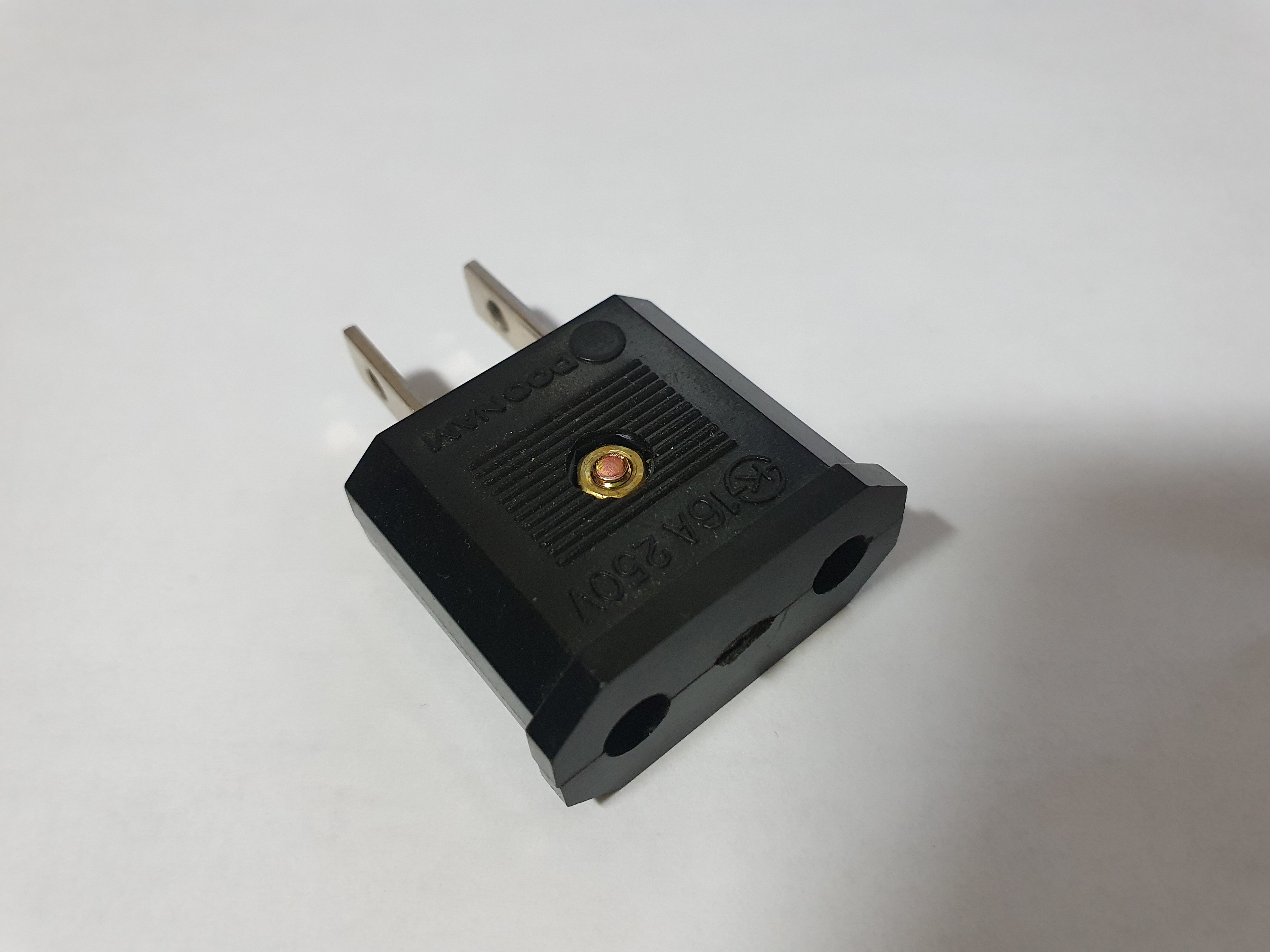 일반적으로 철물점에서 돼지코를 달라고 하면 이 제품을 줍니다. 220V용 제품을 110V용으로 바꿔주는 것인데요. 주로 미국, 일본, 중국 등 110V를 사용하는 나라에 방문할 때 필요합니다. 스마트폰 충전기는 220V용 코드인데 콘센트는 110V용 일 때 돼지코가 필요한 것입니다.