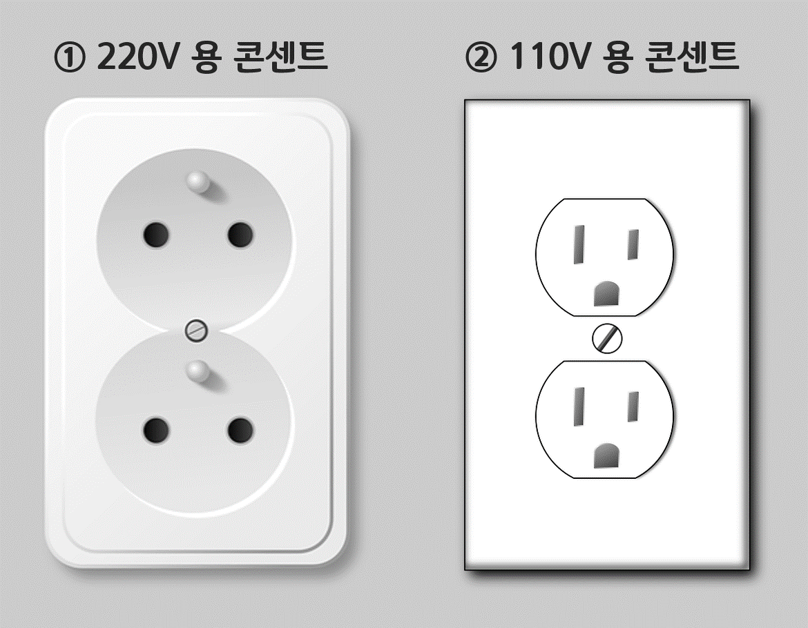 정격 전압별로 플러그의 종류가 다릅니다. 220V는 둥근 막대모양이고 110V는 평평한 막대 모양이죠. 여기서 2가지 경우가 생깁니다. 220V용 전자제품을 110V를 공급하는 지역에서 사용하는 경우, 110V용 전자제품을 220V를 공급하는 지역에서 사용하는 경우입니다. 상황별로 다른 종류의 어댑터가 필요하고 주의해야 할 사항이 있습니다.